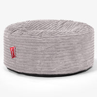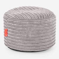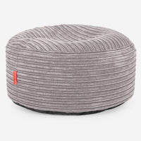 Lounge Pug Large Round Footstool Cord Silver Grey Bean Bag Pouf Small Ottoman Footrest– Big Bertha Original IE