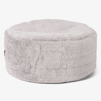 Lounge Pug Large Round Footstool Rabbit Faux Fur Light Grey Bean Bag Pouf Small Ottoman Footrest– Big Bertha Original IE