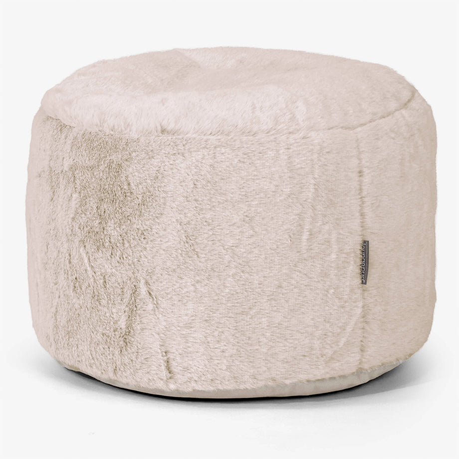 Lounge Pug Small Round Footstool Faux Rabbit Fur Golden Brown Bean Bag Pouf Small Ottoman Footrest– Big Bertha Original IE